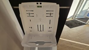Dávkovač skladaných utierok pre rôzne typy (C,Z,V, interfold) je vhodným riešením pre malé firmy. Kapacita dávkovača sú 2 balíky utierok po cca 250 ks v balíku.